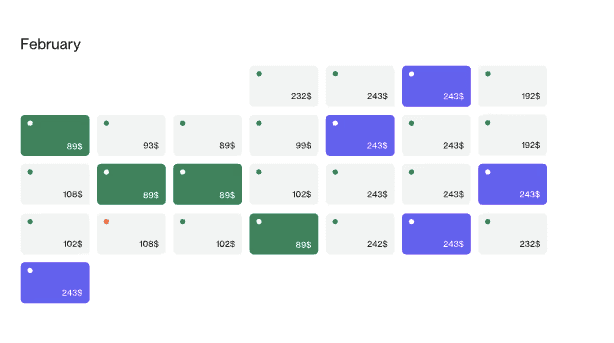 Takvim bazlı 90 günlük fiyatlar