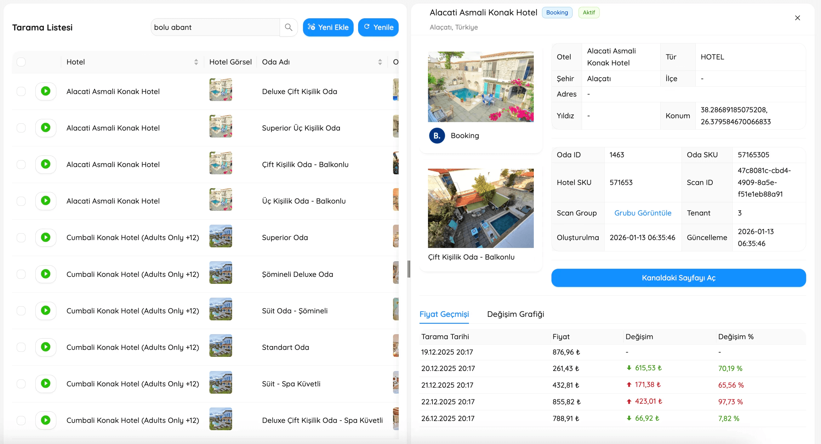 Fiyat takibini manuel yapmak rezervasyon kaybettirir. RateGo, rakiplerinizin fiyatlarını analiz eder ve en iyi oda fiyatını önerir.